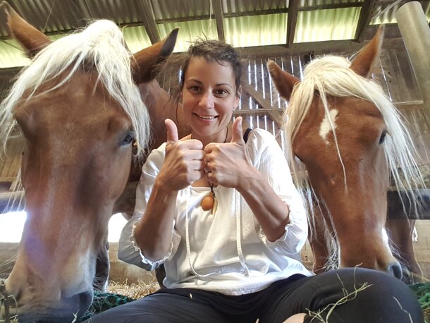 Bonjour, toute et tous, Je vous mets une petite vidéo que j'ai faite il y a quelques jours avec Gilah. Cette jument est assez exceptionnelle. Elle est fine et énergique dans ses réponses. Et j'ai tellement de plaisir à travailler avec. Même après 2 mois d'arrêt (abcès, puis la chaleur), elle reste très attentive et connectée ! La grande classe !!! Nous allons allé loin ensemble ???? A bientôt, Livia PS : vous pouvez me suivre sur Facebook : Terra Verde