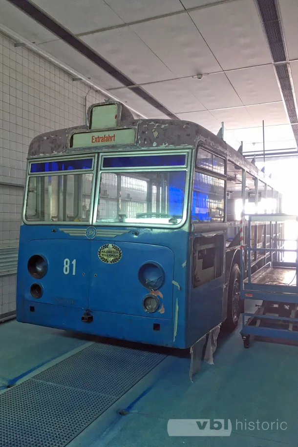 Nach gut 3.5 Jahren Revisions- und Restaurationsarbeiten war es Ende August 2022 endlich so weit: Unser FBW Nr. 81 hat die Depot-Hallen im Weinbergli verlassen und sich zum Strassenverkehrsamt aufgemacht. Die Fahrzeugprüfung verlief positiv, womit der Veteran nun offiziell wieder für den Strassenverkehr zugelassen ist. Noch sind aber einige Schlussarbeiten notwendig, bevor wir den Oldtimer-Bus wieder öffentlich präsentieren können.