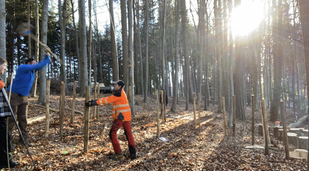 Heute Morgen durften wir mit dem Bau des Waldsofas starten. Nach nur einem Tag steht nun das - quasi - fertige Produkt. Einiges wie zB die Feuerstelle und weitere Details werden noch gemacht. Hier ein kurzer Einblick in den Bautag.