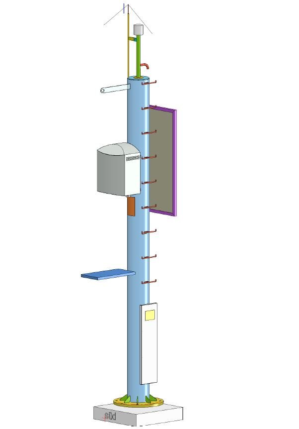 Liebe Unterstützer Dank euren, sowie diversen Firmen- und Sachspenden können wir den Vollausbau der Station in Angriff nehmen. Die Planungs- und Bauarbeiten für die Station sind nun im vollen Gange. Ich möchte euch hier über den Stand der Arbeiten informieren. Vollausbau heisst: Es gibt ein Ultraschall Windsensor der beheizt werden kann. Dazu werden ebenfalls Geräte für die Messung von Temperatur und Taupunkt installiert. Die ganzen Apparaturen müssen natürlich mit Strom versorgt werden. Dieser wird durch ein Photovoltaik-Panel, welches am Mast montiert ist, erzeugt. Ebenso muss das Ganze natürlich durch eine geeignete Blitzschutzanlage gesichert werden. Diese Anpassungen hatten wiederum Einfluss auf die Dimension und Konstruktion des Mastes und mussten deshalb durch das Ingenieurbüro berechnet werden. In nachfolgender Abbildung könnt ihr den letzten Stand entnehmen. Für die Änderungen mussten wir erneut bei Gemeinde und Kanton eine Bewilligung einholen. Diese liegt nun seit Ende Juli vor. Die Bauarbeiten für den Mast können somit beginnen. Bereits diese Woche findet ein erster Materialflug auf den Gipfel statt. Anschliessend werden durch unser Bau-Team die Felsanker für den Mast gesetzt. Wenn alles planmässig verläuft, rechnen wir mit der planmässigen Montage des Mastes im September. Das genaue Datum ist natürlich abhängig von Witterung. Zuletzt erfolgt die Inbetriebnahme und Aufschaltung der Station ins Internet worauf die Daten für jedermann abrufbar sind. PDC Uri, Beat Walker