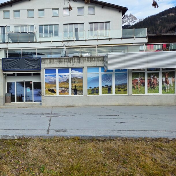 Inzwischen bewegt sich etwas in Savognin! Die Schaufenster der künftigen buteia sind bereits neu gestaltet (siehe Foto). Sie veranschaulichen die Verbindung zwischen unserer Landschaft, den Tieren und den Produkten, die man demnächst im Laden kaufen kann.