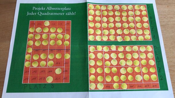 So, knapp 10 Tage unseres Crowdfundings sind vorüber – und 30% der Finanzierungsschwelle sind geschafft. Ein wirklich wunderbares Resultat, vielen Dank an alle, die dazu beigetragen haben. Bisher wurden 48 Quadratmeter unserer neuen Allwetteranlage in Form des 100-Franken-Mercis an die Frau und an den Mann gebracht, was inetwa der Fläche eines der drei Tennisplätze entspricht. Es hat also noch, greift hemmungslos zu und bestellt euch euren eigenen Quadratmeter Wydenbett. Am besten noch heute! Und wer dabei einen besonderen Wunsch hat, etwa den Quadratmeter beim Servicepunkt von rechts, einen aggressiven Quadratmeter vorne beim Netz oder das Zielquadrat des idealen Stoppballes, der kann sich sehr gerne bei uns melden. Auf geht's.