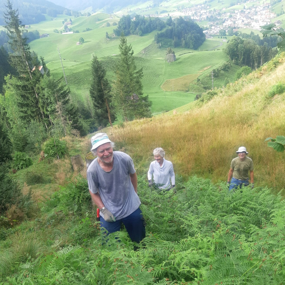 Die Helferinnen und Helfer leisten einen wichtigen Beitrag zur Förderung der Biodiversität. Sie werden mit einem wunderbaren Naturraum und einer herrlichen Aussicht übers Appenzellerland belohnt.