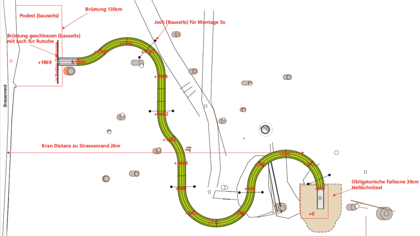 Mit Erreichen der Finanzierungsschwelle von CHF 28'000 können wir alle Spielstationen realisieren ausser der 42m langen Rutschbahn, die als Hauptattraktion des Abenteuerspielplatzes geplant ist.