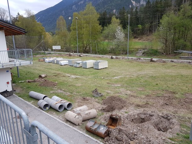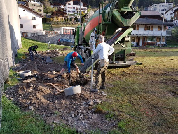 Die Bilder vermitteln eine kleinen Eindruck davon, was die Sanierung der Bandenanlage beinhaltet. Es wurde gegraben, gebohrt, betoniert und viel geschraubt. Das Ergebnis kann sich sehen lassen.
