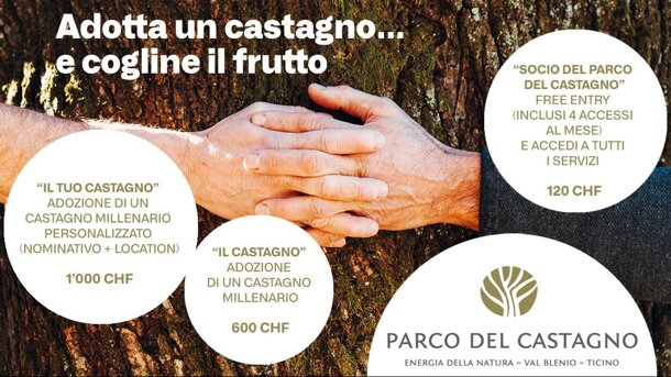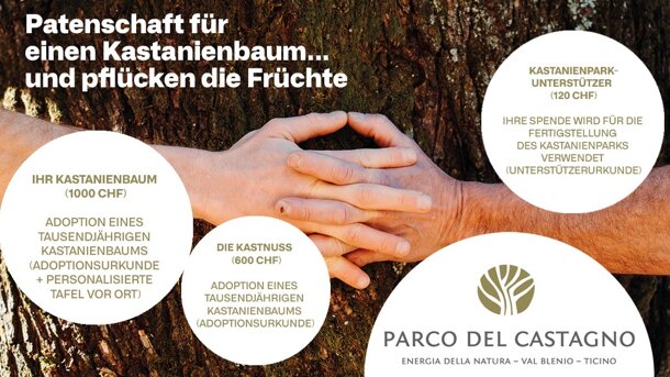 Indem Sie eine Patenschaft für einen Kastanienbaum mit den verschiedenen Paketen übernehmen, die wir später im Detail erläutern werden, und indem Sie die Patenschaft durch eine Adoptionsurkunde erhalten, tragen Sie direkt zur Vollendung eines Werks bei, das allen Tessinern und allen Touristen, die es besuchen, langfristig zugute kommen wird.