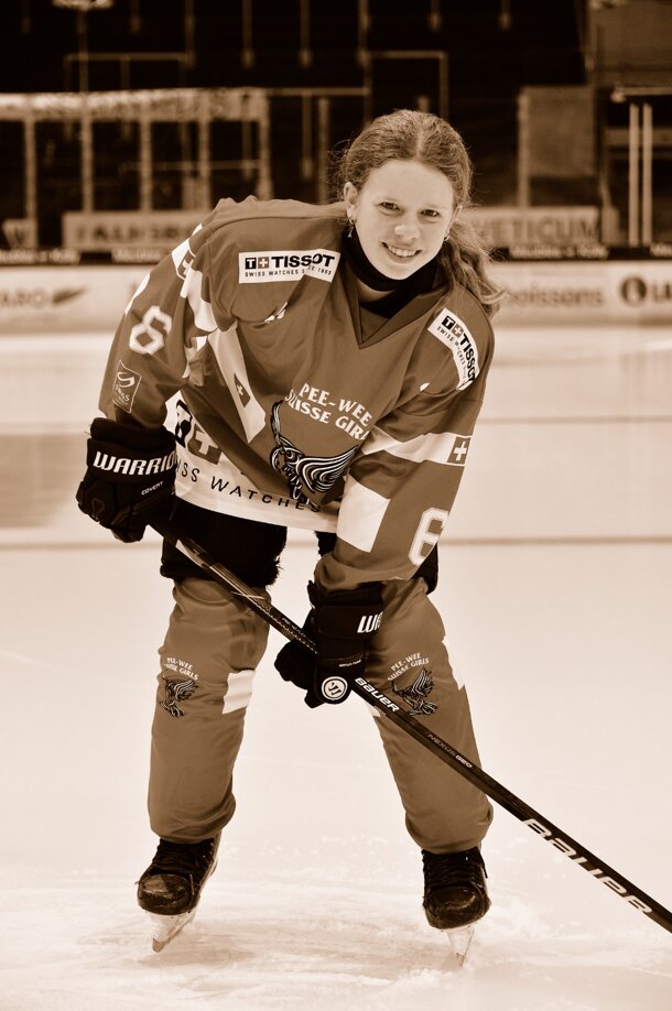 Ich bin Alisha Mia Merkofer, 12 Jahre alt und spiele seit meinem 7. Lebensjahr Eishockey. Nun starte ich meine 4. Saison und wurde vom Coach auf die Selektion des Pee-Wee Girls-Teams der Suisse Romande aufmerksam gemacht.
