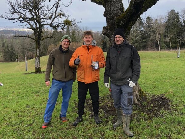 Liebe Unterstützerinnnen und Unterstützer, liebe Patinnen, liebe Paten Es freut uns sehr euch allen nun über eine erfolgreiche Umsetzung des Artenschutzprojektes zu berichten. Am Samstag vor 2 Wochen pflanzten wir mit 10 engagierte Helfern, bei teils stürmischem, teils sonnigem Wetter, knapp 100 vom Aussterben bedrohte Baumsorten. Unter diesem Link gibt es einen ausführlichen Bericht zur Pflanzung: https://www.dieostschweiz.ch/artikel/wind-und-wetter-getrotzt--n6mEdRd Die Bäume sind auf den 4 Höfen in Waldkeich, Tübach, Untereggen und Mauren (TG) verteilt. Die Mercis welche euch teils noch zustehen werden wir in den nächsten Tagen versenden. In den nächsten Monaten werden wir wegen den verschiedenen Anlässen welche wir im Rahmen dieses Projektes geplant haben nochmals auf euch zukommen. Vielen Dank dass ihr uns bei der Verwirklichung dieses Herzens-Projektes geholfen habt! Herzliche Grüsse Leonhard und Tobias