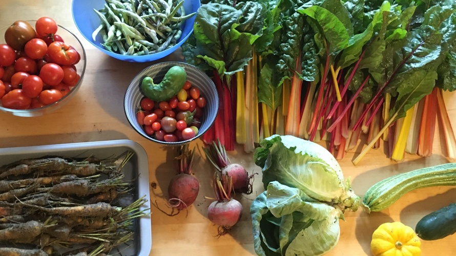 wird biologisches Gemüse angebaut, welches gratis konsumiert
