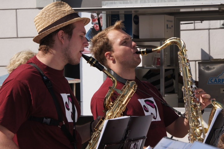 Es fehlt für die Aufritte ein passendes Logo und eine entsprechende Bekleidung in Form eines Polo-Shirts und einer allfälligen Notenständerbeschriftung.