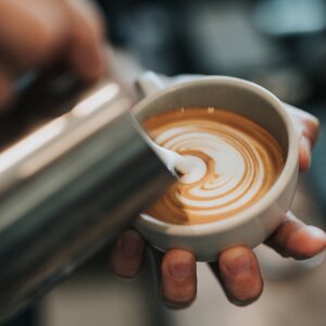 Kosten von Arbeitstischen und Genusstafeln in der Kaffeebar. Dabei