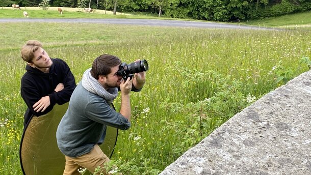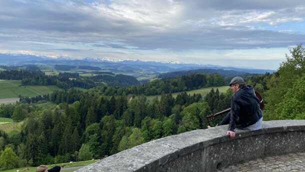Die Umsetzung für unser CD-Projekt nimmt nun seinen Lauf. Auf der Lueg haben wir unsere Fotosession abgehalten und uns frühmorgens getroffen, um das Morgenlicht der aufgehenden Sonne auszunützen. Ich hab Steve um 6.00 Uhr (!) morgens vom Bahnhof Burgdorf abgeholt. Auf der Lueg hat unser Fotograf und Designer Tobias Grimm und Rafael, sein Praktikant, uns erwartet und bereits die ersten Stimmungsbilder geschossen.