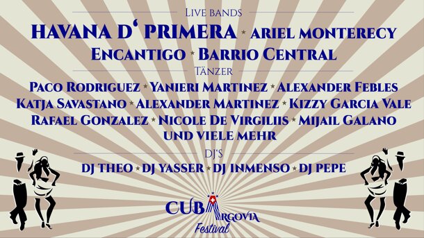 Das CubArgovia Festival soll zeigen, dass auch in der Schweiz ein solch authentischer Event stattfinden kann. So konnten wir 35 KünstlerInnen buchen, um für unsere Besucher ein exklusives Programm zusammenzustellen.