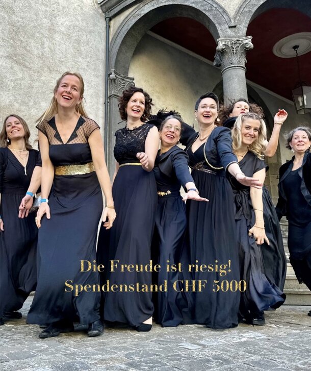 Grossartige Neuigkeiten! Dank eurer unglaublichen Unterstützung und Grosszügigkeit haben wir unser Spendenziel erreicht! Wir sind überwältigt von der Solidarität und dem Einsatz, die jeder von euch gezeigt hat. Jeder einzelne Beitrag, ob klein oder gross, hat dazu beigetragen, dieses Ziel zu erreichen. Ein riesiges Dankeschön an alle Spender*innen! Euer Engagement hat einen echten Unterschied gemacht und wir freuen uns darauf, die nächsten Schritte zu gehen und unser Projekt bereits in ein paar Tagen zu starten. Wir können es kaum erwarten, euch am 8. oder 9. Februar 2025 unsere Projektarbeit präsentieren zu dürfen. Freut euch auf besondere Abende voller Musik und unvergesslicher Momente. Herzlich, euer damenchor CHURSÜD