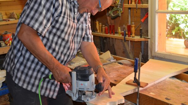 Materialien: Dreischichtplatten, Maschinen, Schrauben, Lampen,