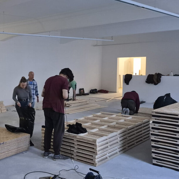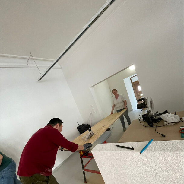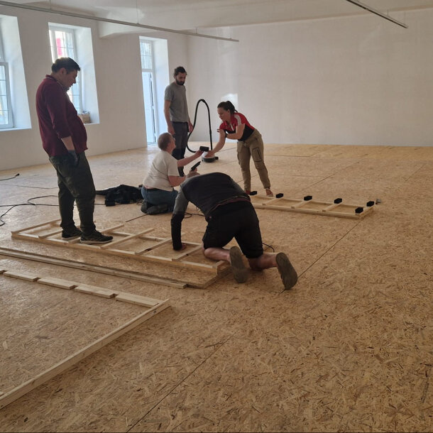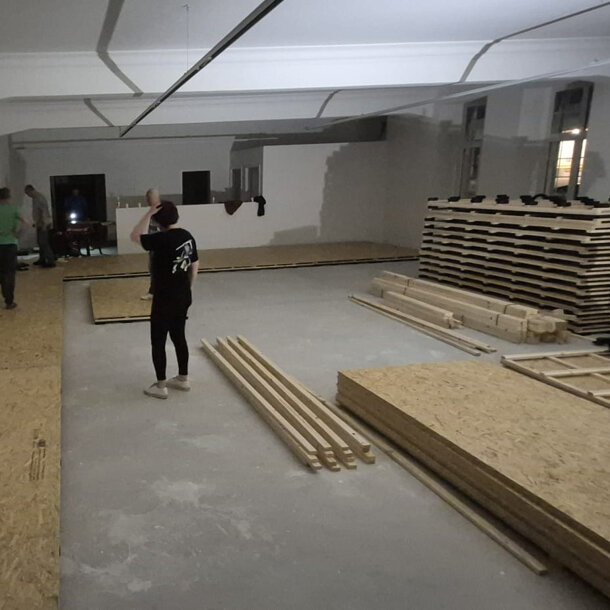 Jeudi et samedi, nos bénévoles se sont relayés pour avancer la construction du plancher flottant. Le voilà prêt, sacré travail ! À l'heure où j'écris cette chouette nouvelle, il nous reste exactement trois semaines pour atteindre l'objectif fixé du financement. En parlant de délai, il est prévu que les cours reprennent après les vacances de Pâques dans le nouveau dojo. Le rêve devient bientôt réalité ! Bon, je dois vous laisser, mon entraînement commence dans 40 minutes. J'espère que la lecture de mes news vous fait plaisir, continuez à diffuser la chose, vous n'imaginez pas à quel point cela aide le JKC. La cheffe de projet (et tout le club) vous remercie !