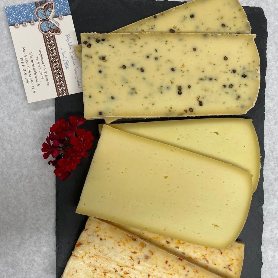 Zwei Personen können vor oder im Lädli ein Racletteschmaus mit allem was dazu gehört geniessen.