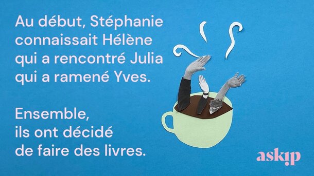 Financer la création de la maison d'édition, les frais liés à son identité visuelle, le développement de son site internet. Mettre sur pied des animations et rencontres autour du premier titre à paraître chez askip, Comme un poisson-fleur.