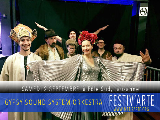 Bonjour à toutes et tous Notre campagne crowfounding continue à grands pas et nous sommes ravis de résultats ... Nous sommes à la moitié de notre 2ème objectif et continuons à vous remercier du fond du coeur ! Festiv'Arte célèbre le vivre ensemble et la multiculturalité, le travail associatif et l'engagement artistique... Entre les artistes invités, nous comptons avec des musiciens locaux qui donnent une plus-value à notre programme. Voici la présentation de la bande du samedi 2 septembre GYPSY SOUND SYSTEM ORKESTRA De la musique slave, de l'électro-flamenco, des cuivres en folie, du foxtrot électrique... ça vous tente? Alors vous ne pouvez pas vous perdre Gypsy Sound System Orkestra et ses folles prestations scéniques! Une fusion sublime et effrénée pour faire la fête à Festiv'Arte http://www.gypsysoundsystem.com