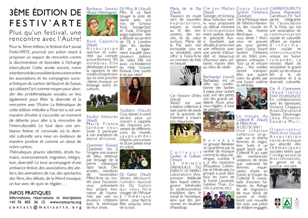 Le tout accompagné d’une ambiance festive, des associations et artistes locaux, des spectacles, de la musique... Nous comptons avec votre soutien. Partageons ensemble la richesse de la multiculturalité!