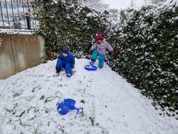 Bei uns wird bei Schnee, Regen und Sonnenschein im Garten getobt. Unsere Kleinsten wissen sich mit viel Kreativität zu beschäftigen. In den vergangenen Tagen konnte die "Gartenkasse" dank vielen lieben Menschen weiterhin gefüllt werden. Es fehlen uns aber immer noch CHF 3500 bis zum Finanzierungsziel. Vielleicht knacken wir dieses noch vor Weihnachten. Bitte informiert alle eure Freunde, Bekannten, Arbeitskollegen über dieses einzigartige Projekt. Herzlichen Dank für eure Unterstützung. Wir wünschen euch frohe Weihnachten und ein gesundes 2023.