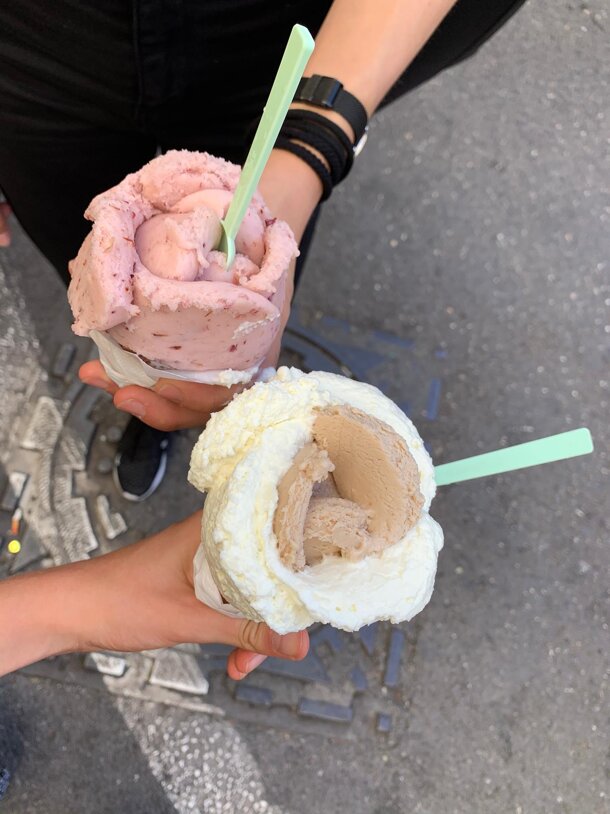 Ce w'end j'ai eu l'occasion de déguster une délicieuse glace... mais ça m'a fait pensé qu'elle fondait aussi vite que le temps qui reste pour le crowdfunding ! Encore 2 semaines avant que ce crowdfunding se termine. Moi, je ne vois pas le temps passer car avec le lycée le matin et les cours artistiques l'après-midi mes journées passent rapidement. Depuis 3 jours un torticolis m'embête un peu et donc je ne peux pas faire certains cours... mais j'espère que ça passera vite. On remercie aussi Le Journal La Semaine qui m'a fait le beau cadeau d'un super article cette semaine ce qui me permet de partager encore un peu plus ce lien du crowdfunding. Je vous laisse avec cette belle vue depuis Antibes.... et notre glace trop miam !!! A bientôt, Gilliane & famille