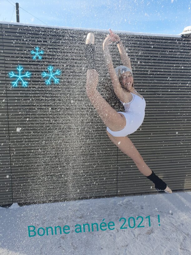 Bonjour à tous, Voici que je commence déjà la 3ème semaine ici à Cannes depuis mon retour après les 2 semaines de vacances de Noël chez moi à Court dans ma famille. C'était chouette de profiter un petit coup de la neige mais surtout de revoir ma famille et mes amis. J'ai tout de suite recommencé par un programme bien chargé car nous avons beaucoup de " samedis travaillés" pour la préparation du spectacle " des cartes blanches" du 19 février. C''est un spectacle que nous devons élaborer nous-mêmes entre élèves par petits groupes, et nous devons créer entièrement les chorégraphies etc.. donc un gros challenge ! Le scolaire me prend aussi toujours encore bien du temps. Il y a pas mal de devoirs. Certaines branches comme l'anatomie, histoire de la danse, SVT, SES, sont pour moi totalement nouvelles mais c'est des branches que j'aime encore bien, par contre en anglais cela me semble tellement difficile que parfois je suis totalement découragée ! J'aimerais faire des progrès à pas de géant mais parfois j'ai le sentiment de faire du sur place longtemps !!! Sinon mon premier bulletin de danse était encourageant avec des observations positives donc cela m'encourage à me donner à fond chaque semaine. Avec ces flocons de neige sur ma photo, je vous souhaite encore qu'il neige du bonheur chaque jour pour vous en 2021 ! A bientôt Gilliane