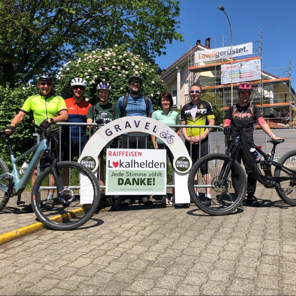 Am Samstag 10. Mai sind wir in Laufenburg beim Blauen bei besten Witterungsbedingungen zur Raiffeisen Lokalhelden Zielbogen Social Ride auf der 38 km F-Course Gravel Strecke gestartet.