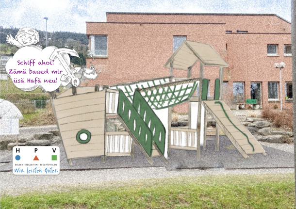 Oberhalb des Hauptbahnhofs Rorschach befindet sich die heilpädagogische Schule Wiggenhof, welche ein Teil des HPV Rorschach ist. Die Schule bietet 90 Schulplätze und acht Wohnplätze für Kinder und Jugendliche zwischen 4 und 20 Jahren an. Der Pausenplatz, welcher zwischen Schule und Wohnen angesiedelt ist, ist in die Jahre gekommen und bietet nur sehr beschränkte Angebote wie Schaukeln, eine Rutsche und einen Brunnen. Es fehlen Anreize für Rollenspiele und Koordinationstraining, und auch für Kinder mit starken Beeinträchtigungen finden sich nur sehr wenige Tätigkeiten. Wir planen deshalb den Pausenplatz zu einer Hafenstadt umzubauen, welche alle Sinne anspricht, zum Spiel animiert und möglichst für alle Kinder mit und ohne Handicap attraktiv sein wird.