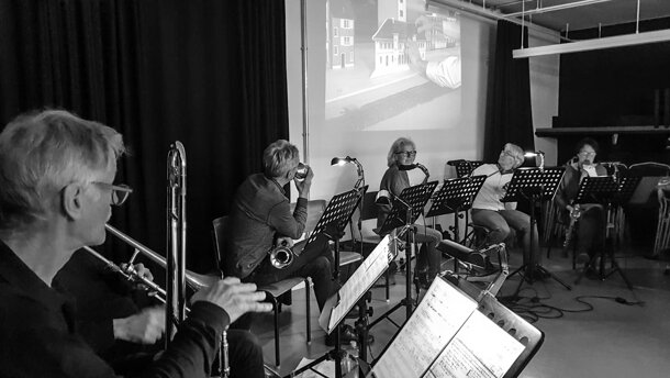An diesem heiter bis stürmischen Tag, Samstag, dem 23. Februar, war High Noon für Chor, Orchester und Sprecher von Heimat 52. Sie trafen das erste Mal in der Musikwerkstatt Brugg aufeinander. Ziel war es, Musik, Gesang und Text mit den im Hintergrund laufenden Filmsequenzen in Einklang zu bringen. Tönt anspruchsvoll? War es auch! Aber alle Beteiligten waren begeistert dabei, lauschten hingebungsvoll den Regieanweisungen und setzten diese auch engagiert um. Zum ersten Mal konnten so nämlich alle sehen, wie das Theater einmal aussehen wird, wenn es dereinst die Bühnenreife erlangt. Ein paar begeisterte, hingebungsvolle und engagierte Spender brauchen wir noch, deshalb – wie immer – die Bitte um einen kleinen oder grossen Zustupf, damit Heimat 52 auch finanziell auf die Zielgerade einschwenken kann.