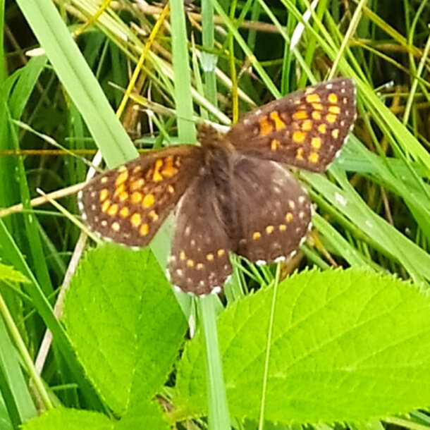 Die Arbeiten wurden begleitet vom Gesang der Goldammer und schönen Naturbeobachtungen wie dem Neuntöter und weiteren Brutvögeln sowie einem jungen Feldhasen plus Elterntier. Diverse Schmetterlinge, darunter der Schachbrettfalter, Wachtelweizen- und Baldrian-Scheckenfalter nutzten das Blütenangebot, besonders das der Sumpfkratzdisteln.