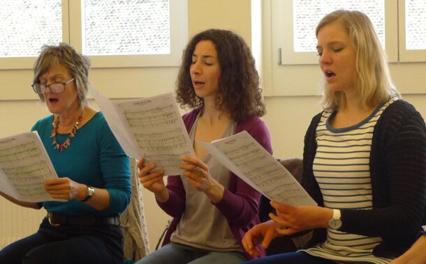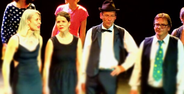 Die vergangenen zwei Tage vibrierten unsere Stimmbänder jeder Grippe zum Trotz: Wie Puzzleteile fügen sich die einzelnen Arrangements zu berühmten Jazzklassikern allmählich zu einem stimmungsvollen Bild. Heinz Girschweiler (musikalischer Leiter) und Nikolaus Schmid (Schauspieler) locken uns Chorsängerinnen und Chorsänger mit Professionalität und Humor zielstrebig aus der Reserve!