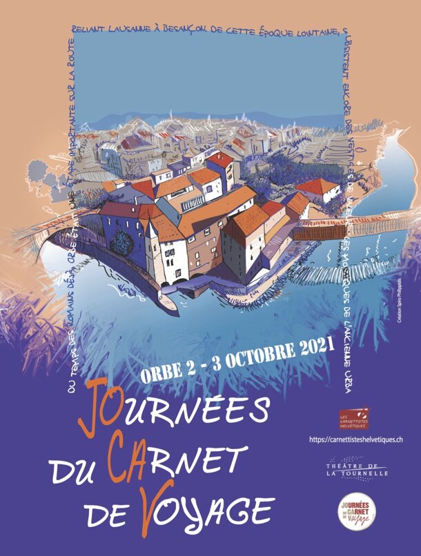Les derniers préparatifs des Journées du Carnets de Voyage vont bon train et nous nous réjouissons de partager avec vous ce week-end du 2 et 3 octobre qui s’annonce haut en couleurs! Retrouvez le programme détaillé de la manifestation sur notre site Internet www.carnettisteshelvetiques.ch et découvrez nos propositions d’ateliers autour du carnet, que vous souhaitiez perfectionner votre pratique ou faire vos premiers pas dans l’univers du carnet de voyage. Ne tardez pas à vous inscrire, certains d’entre eux affichent déjà complets. Envie de vous engagez comme bénévoles à nos côtés? Il est encore temps de nous faire part de votre motivation en nous écrivant info@carnettisteshelvtiques.ch. Pour information, les JOCAV seront soumises au pass sanitaire, tant pour admirer les expositions que pour participer aux ateliers. Votre visite commencera donc à l’accueil, devant l’Hôtel de Ville, pour récupérer votre bracelet-laisser passer. Nos salutations créatives et très bientôt à Orbe! Le Comité des Carnettistes Helvétiques
