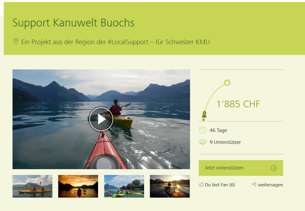 Heute hat unser Projekt "Support Kanuwelt Buochs" in die Finanzierungsphase gewechselt. Wir sind sehr gespannt, wie unsere Gutscheine bei euch ankommen und danken euch herzlich für die Unterstützung! Sonnige Paddler-Grüsse, das Kanuwelt-Team
