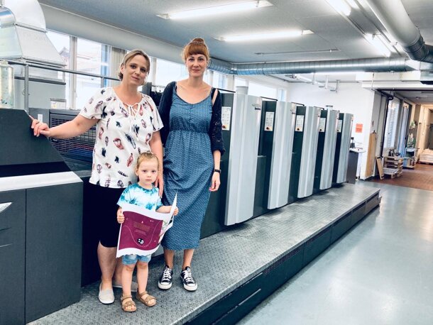 In den vergangenen Tagen haben viele von euch gefragt "Wann ist es denn endlich soweit?" Antwort: JETZT! :-) Heute Vormittag durften wir zwei Buch-Mamis stolz und freudig zuschauen, wie unser Tschäck bei der Druckerei Schürch in Huttwil aus den Druckmaschinen monsterte. Jetzt braucht es nur noch einen guten Buchbinder und etwas Zeit. Die meisten von euch sollten ihr Buch-Exemplar Anfang August 2022 in den Händen halten. Der Versand ins Ausland könnte etwas länger dauern. ;)