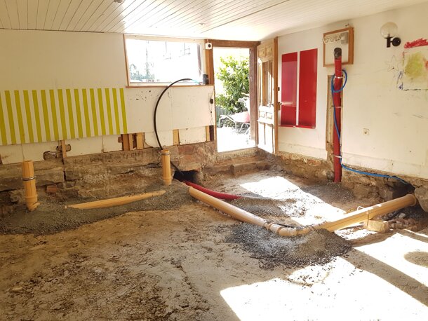 Hallo Ihr Lieben! Ihr seid Spitze! Erst seit einigen Tagen läuft die Finanzierungsphase und schon einiges ist zusammengekommen. Herzlichen Dank an all jene. die der Kinderwerkstatt helfen. Bitte macht weiter munter Werbung. Mit der grosszügigen Hilfe von regionalen Handwerkern und dem nimmermüden Thomas konnten wir schon einiges umsetzen...die ersten Leitungen sind schon verlegt.