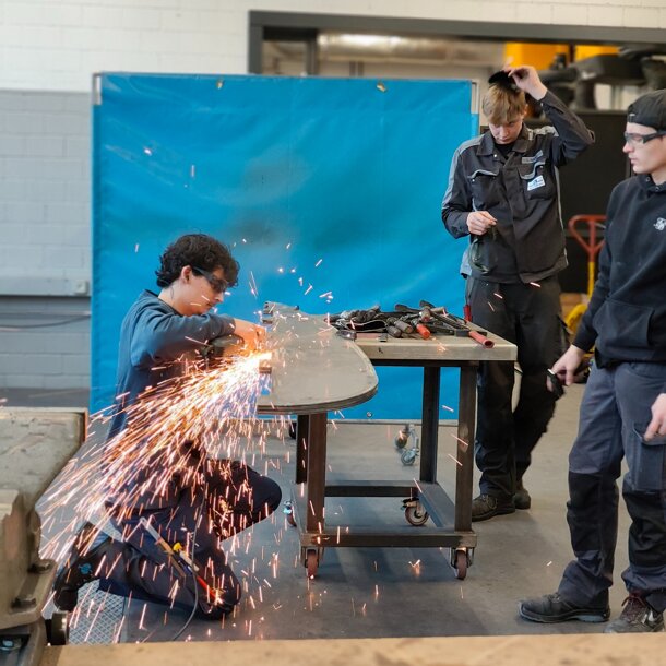 Am 29. November hat die Berufsschule Lenzburg die Tore für einen halben Tag geöffnet. Wer vorbeikam, konnte den Metallbau-Lernenden beim Bauen des Küttiger Rüeblis direkt über die Schulter schauen.