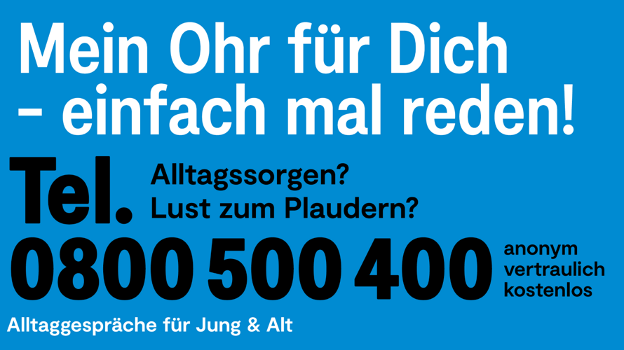 Der Verein «Mein Ohr für Dich-einfach mal reden!» hat sich zum Ziel gesetzt, einen kostenlosen, anonymen Telefondienst anzubieten, um einsamen Menschen, Jung & Alt, eine soziale Teilhabe niederschwellig zu ermöglichen. Telefonieren gegen die Einsamkeit, das erste Alltagstelefon in der Schweiz: 0800 500 400.