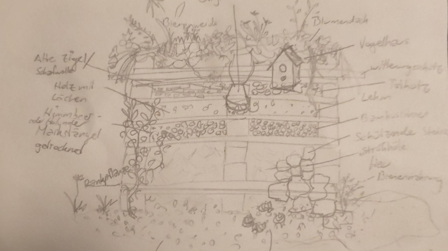 Ziel ist es, einen neuen Lebensturm/Insektenhotel zu bauen.