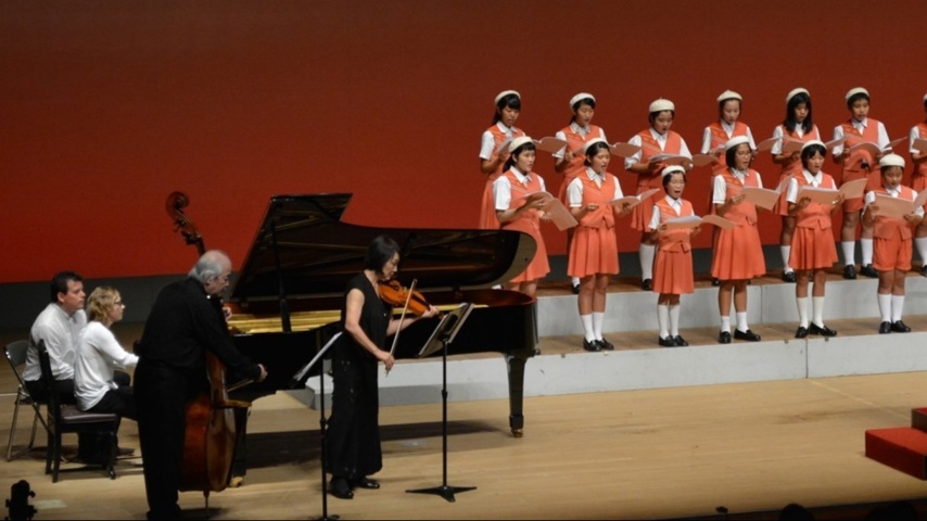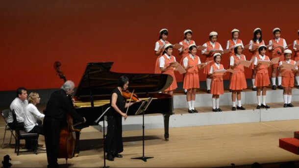Bereits 2016 hat das Schweizerisch-Japanische Trio Noriko Kawamura (Violine), Alena Cherny (Klavier) und Fumio Shirato (Kontrabass) gemeinsam mit dem Jugendchor ISHIGAKI das vom Zürcher Komponisten Walther Giger komponierte Werk «Sora wa tsunagatteiru (One Blue Sky)» uraufgeführt, ein Stück, welches zum gleichnamigen Gedicht von Takeru Masuda aus Ishigaki geschrieben wurde. Seine Worte träumen vom tiefen Wunsch und der Sehnsucht eines Jungen nach Frieden auf der ganzen Welt. Wir hoffen mit unserem Gegenbesuch in Japan diesem Wunsch etwas näher zu kommen.