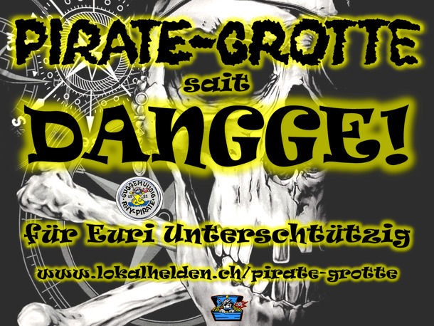 Zwar leider immer noch nicht mit den Proben (dieser Zeitpunkt ist immer noch nicht absehbar) aber immerhin mit unserem Crowdfunding-Projekt! Wir stehen nun in der "Finanzierungs-Phase", ab sofort kann also auch gespendet werden. Wir hoffen dass Ihr unsere "Merci's" ansprechend findet und ihr den Link fleissig teilt und natürlich auch spendet. Besten Dank für Euren Einsatz zur Rettung der Pirate-Grotte. Und nicht vergessen: teilen, teilen, teilen.
