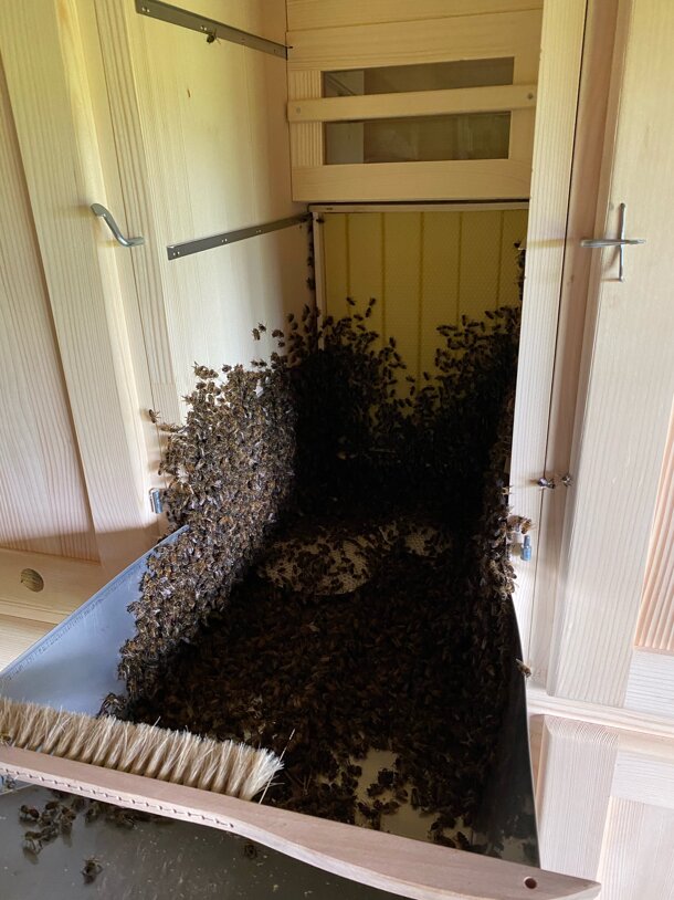 Wie ihr im vorgehenden Beitrag lesen konntet, sind bei unserem Beielihuus inzwischen Bienen eingezogen. Gerne zeigen wir euch einige Bilder als Einblick in unsere imkerliche Tätigkeit.