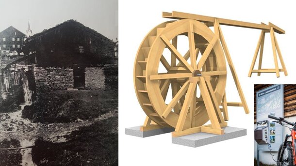 Bau und Inbetriebnahme des mit Bergbach Wasser angetriebenes Mühlerads. Mit dem Wasserrad wird erneuerbare Energie erzeugt und diese Energie wird der beim "Il Mulin" aufgestellten E-Bike Ladestation zugeführt. Eine kreative, innovative und einzigartige Idee wird damit umgesetzt.