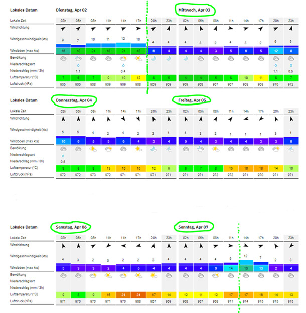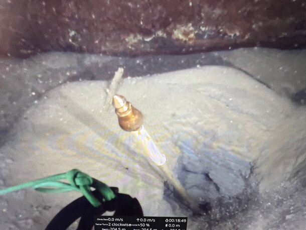 Um die Hebeleinen unter dem Wrack zu platzieren, ist zunächst erforderlich, eine Lanze unter dem Wrack zu spülen, um eine Hilfsleine durchzuziehen. An dieser Hilfsleine werden dann die Hebeleinen durchgezogen. April, April, das Wetter macht, was es will. Das grosse Wetterfenster, das zu Beginn der Woche von Meteorologen vorhergesagt wurde, ist nicht eingetreten bzw. wird bereits heute Nachmittag und morgen von starken Winden unterbrochen. Dies wirft unsere Planung weiter zurück. Aktuell richten wir unseren Blick auf das Wochenende und versuchen, dort so viele Tage wie möglich zu nutzen. Für die Bergung von 210m auf 12m Tiefe benötigen wir nach der vollständigen Vorbereitung des Wracks ein perfektes dreitägiges Wetterfenster. Wir hoffen, dass sich dies nächste Woche öffnet. Andernfalls wird der Zeitplan für die Bergung bis zum 17. April knapp.