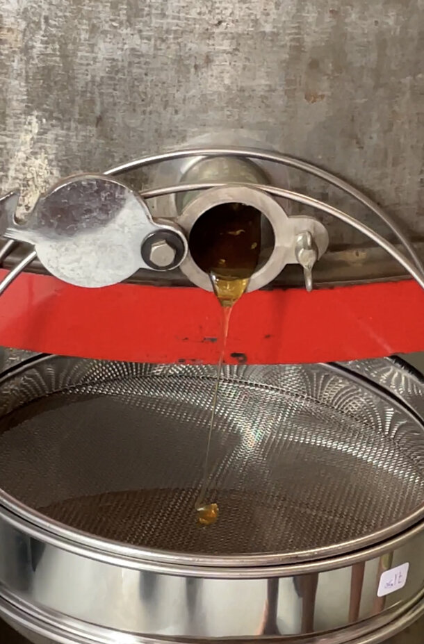 Was für eine Freude wenn der erste Tropfen vom eigenen Honig in den Kessel fliesst...