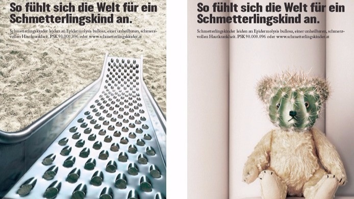 Epidermolysis bullosa - kurz EB (blasenbildende Hautablösung) ! Eine Krankheit, über die wir normalerweise nicht all zu viel hören und noch weniger darüber wissen. EB ist ein Gendefekt und derzeit unheilbar. Die Haut von Menschen mit EB ist sehr verletzlich, weil sie nicht richtig verankert ist. Deshalb nennt man EB Betroffene sinnbildlich auch „Schmetterlingskinder“, weil ihre Haut so verletzlich ist wie die Flügel eines Schmetterlings.