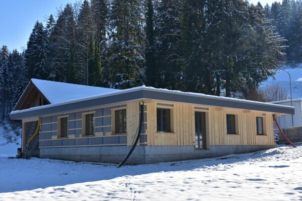 Gerüst weg, Schnee weg, Winterschlaf vorbei! Statt Schnee liegt bereits Kies auf dem Flachdach - fertig! Im Innern sind die Bodenplatten verlegt - fertig! Und jetzt? Jetzt kommt der Frühling und es wird Zeit, dass die Aussenschalung fertig wird... Fertig? Noch lange nicht - für uns ist jeder Franken wichtig! Danke für deine Unterstützung!