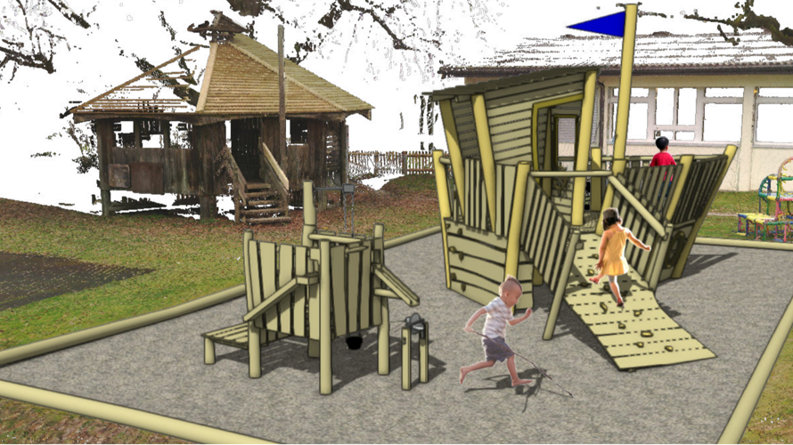 Das Kinderhaus Arbon bietet den Arboner Familien seit nun 100 Jahren Kinderbetreuung an (seit 1952 an der Liegenschaft an der Heimstrasse). Für die Kinder trumpft die Liegenschaft mit einem fast 2000qm grossen Garten auf, was im Kinderbetreuungsbereich aussergewöhnlich ist. Leider hat das vorhandene Klettergerüst ausgedient und entspricht nach betrieblichen Veränderungen nur noch bedingt der Zielgruppe von Kindern unter 4 Jahren. Das bestehende Gerät muss also - auch aus Sicherheitsgründen - in eine kleinkindgerechte Variante getauscht werden. Wir haben uns für ein Spielschiff mit kleinkindgerechten Klettermöglichkeiten entschieden, was durch den Bezug zum See die Lebensnähe der Kinder aufnimmt und zum Bewegen sowie Rollenspiel anregt. Das Spielschiff besteht unter anderem aus einer Kabine mit Bullauge, einer Kleinkinderrampe mit Klettergriffen sowie einem Netzaufgang. Abgerundet wird das neue Gerät durch ein Kiesspiel, welches den Fallschutz aus Kies sinnvoll ergänzt. Das Kiesspiel besteht aus einem zweistufigen Podest, einem drehbaren Kieskran und einer Kiesrutsche. Den Mindestbetrag der Kampagne möchten wir in diese notwendige Anpassung investieren.