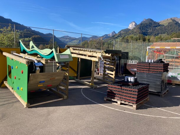 Gut ding will weile haben... Nach einigen Steinen die aus dem weg gerollt werden mussten, gehen wir mit grossen Schritten unserem Ziel entgegen. Es tut sich etwas auf dem Schulhaus Areal. Morgen soll der erste grosse teil der Spielgeräte Installiert werden. In einem 2 Schritt werden die Fundamente gegossen, zu guter letzt müssen noch Schutzmatten verlegt werden. Und dann wollen wir, mit ein wenig Verspätung, "Üsä Spielplatz" am 29.10.2023 den Kindern zum Spielen übergeben. An dieser Stelle nochmals ein Herzliches Dankeschön an all unsere Unterstützerinnen und Unterstützer. Es ist grossartig wie viele Menschen unser Projekt unterstützt haben. Danke der Elternverein Oberwil