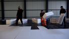 montieren, die Materialräume auszurüsten und die Matchballuhr zu